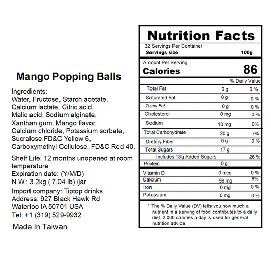 Discover a delightful range of boba tea toppings, from chewy tapioca pearls to bursting fruit jelly, adding an explosion of flavor and texture to your favorite beverage. Satisfy your cravings and customize your drinks with our premium boba tea toppings. Enhance your sips with the tantalizing chew of boba pearls or the fruity burst of popping boba. Elevate your tea game today and explore the endless possibilities of boba tea toppings.