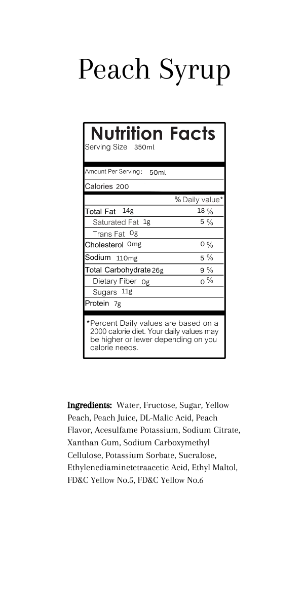 - Two 11.8 oz Peach Syrup